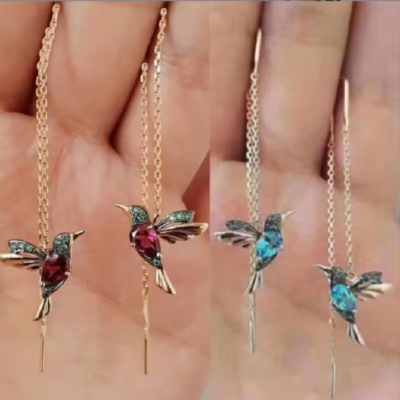 速売通の人気クロスボーダーの赤いジルコニウムの羽ばたきハチドリのイヤリングの長いタイプの小鳥の個性の動物のピアスのイヤリング