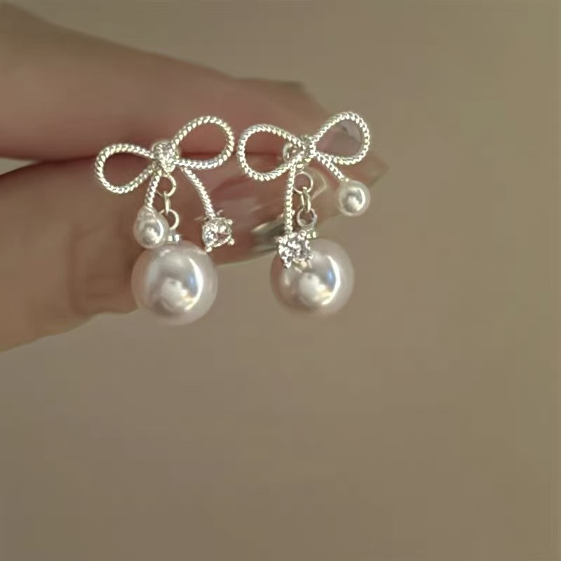国境を越えた売れ筋の日本と韓国のリボンパールファッションハイエンド多用途イヤリングニッチINSインターネットセレブと同じスタイルのイヤリング