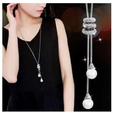 国境を越えた売れ筋のヨーロッパとアメリカのパールリボンフレンチコートネックレスボウビーズクリエイティブ絶妙な鎖骨チェーン