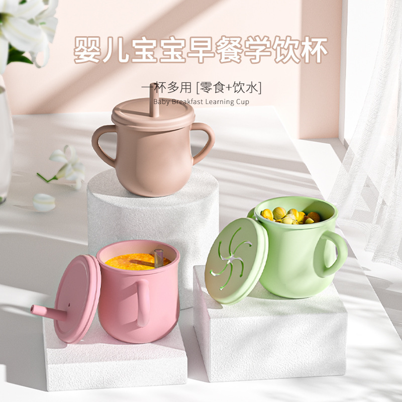 奔海達のシリカゲルの赤ちゃんの多目的のコップのお菓子の杯は高温に耐えて転び防止の訓練のシリカゲルのストローの学飲の杯に耐えます。