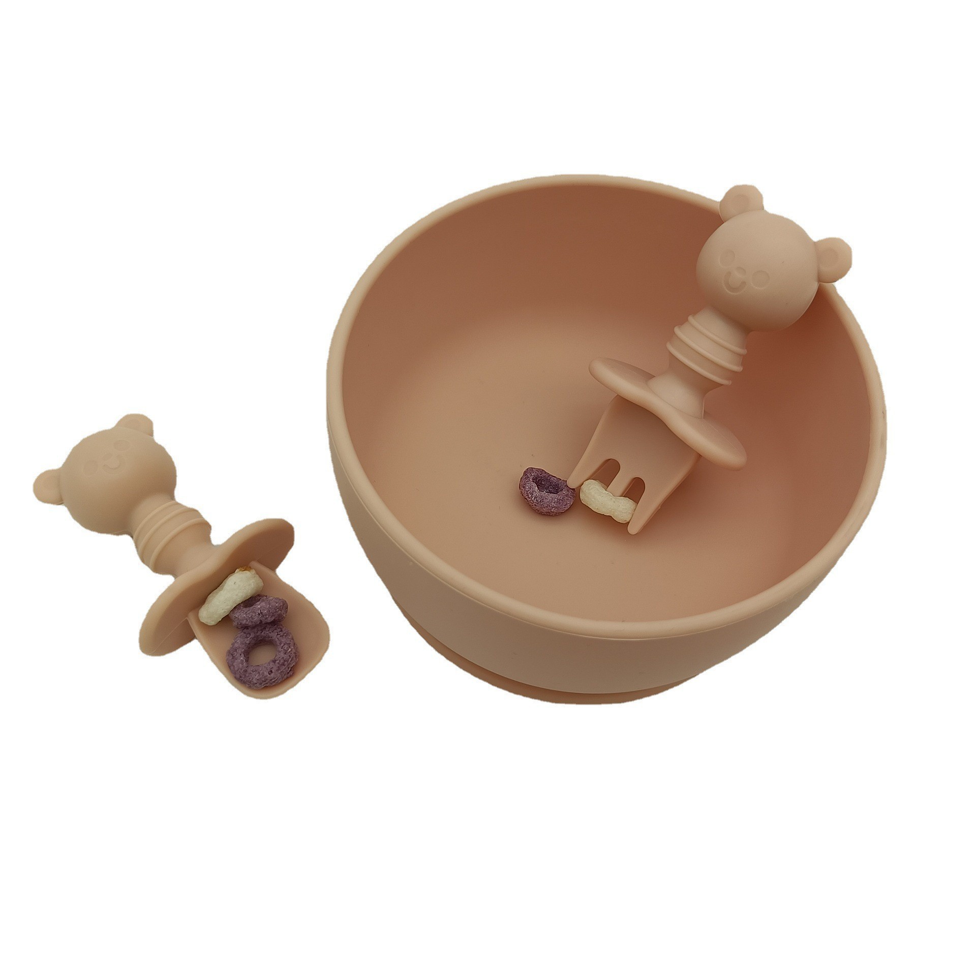奔海達工場シリコン赤ちゃんフォークスプーン赤ちゃん給餌フォークスプーン赤ちゃん訓練フォークスプーンシリコン熊フォークスプーン