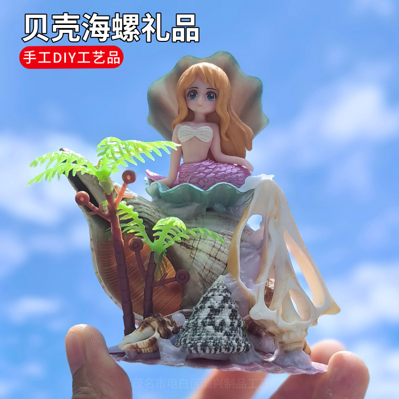 貝殻の人魚の微景観のdiy盆栽の水槽の置物の海洋の水槽の布の景観の造景の小さい工芸品