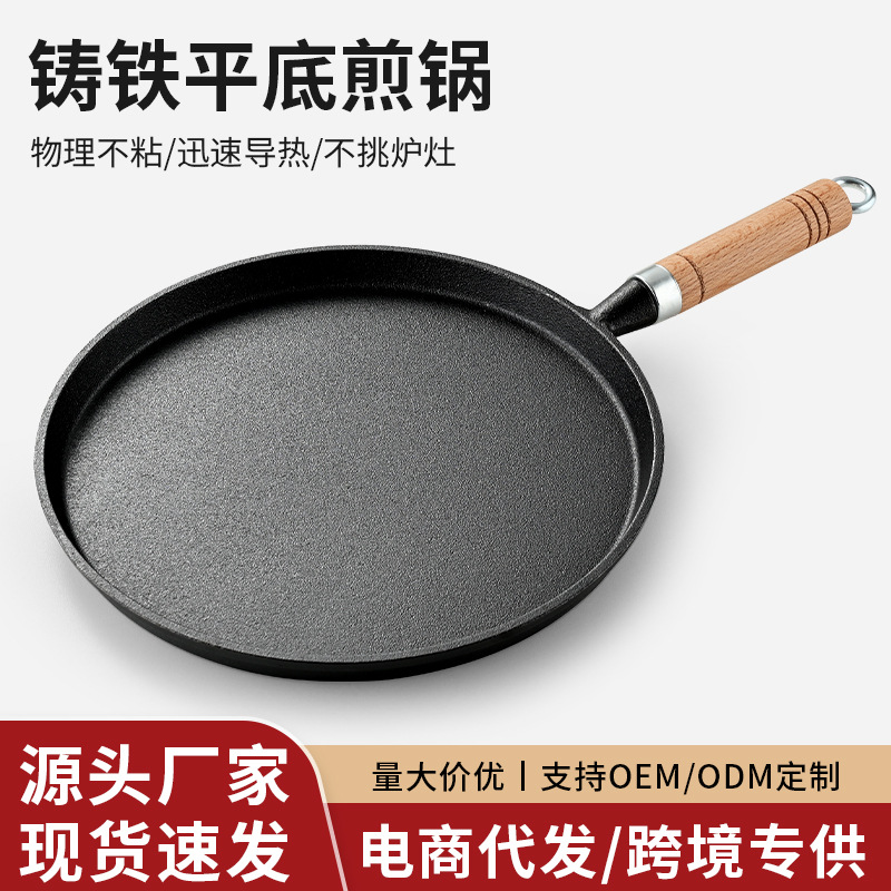 卸売り鋳鉄フライパン家庭用コーティングされていない烙餅鍋の手掴み餅は、フライパンのパンケーキの実の道具にくっつかない