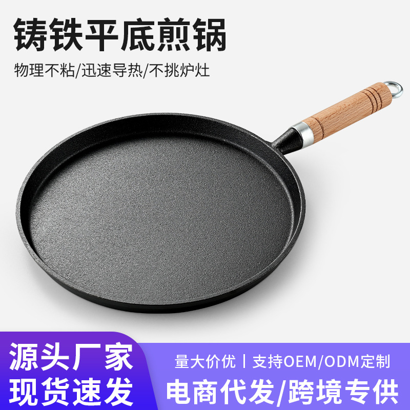 卸売り鋳鉄フライパン家庭用コーティングされていない烙餅鍋の手掴み餅は、フライパンのパンケーキの実の道具にくっつかない