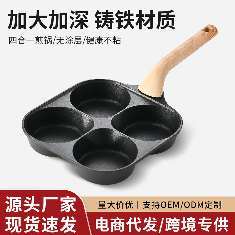 卸売鋳鉄朝食パン平底パンケーキエッグバーガーパン平底 4 穴家庭用オムレツノンスティックパンミートエッグバーガー