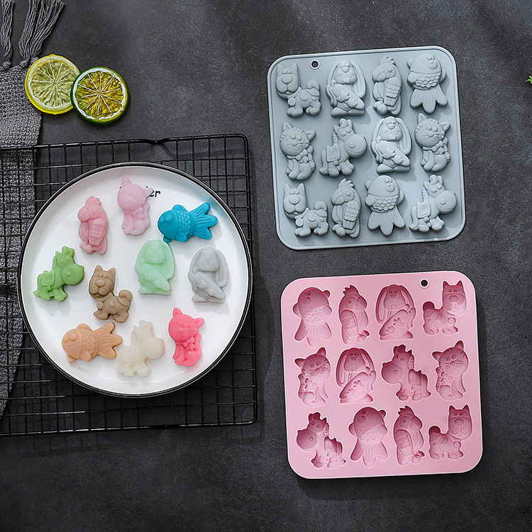 スポット12連6種類の異なる動物の形のシリカゲルケーキ型滴金型プリンチョコレート焙煎ツール