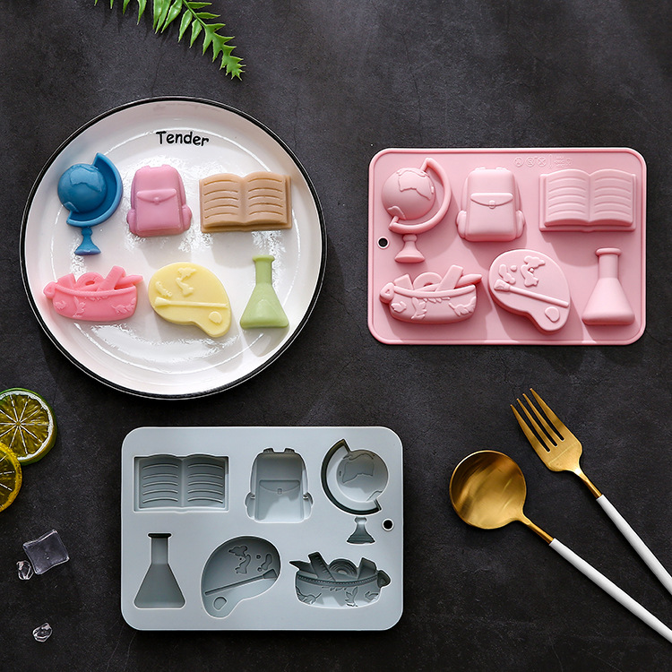 現物6連6種類の異なる学習用品のテーマ造形シリカゲル金型ケーキ型氷チョコレート金型