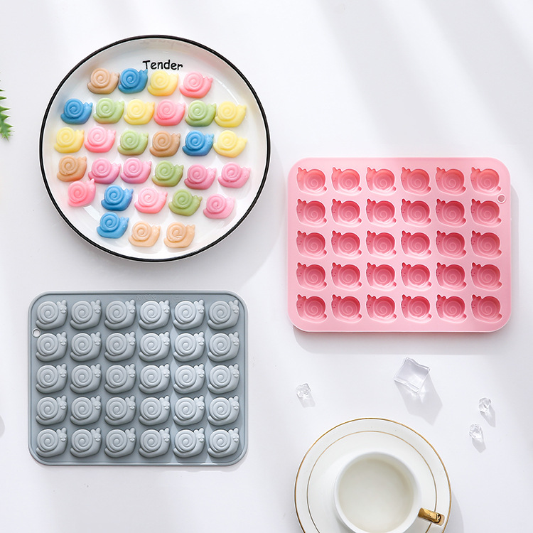 30個の小さなカタツムリ型シリコンモールド、ソフトキャンディチョコレートモールド、ベーキングケーキモールド、接着剤モールド在庫あり