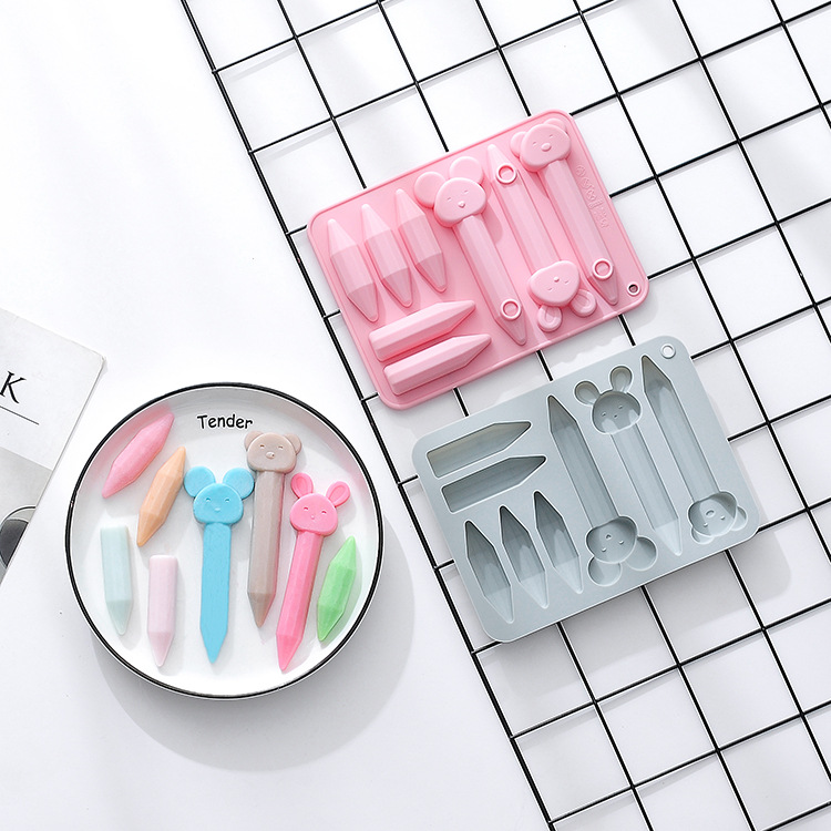 スポット8連アニメシンプルなデザインクレヨン金型diy自作マルチカラー絵筆シリコン金型ケーキ金型