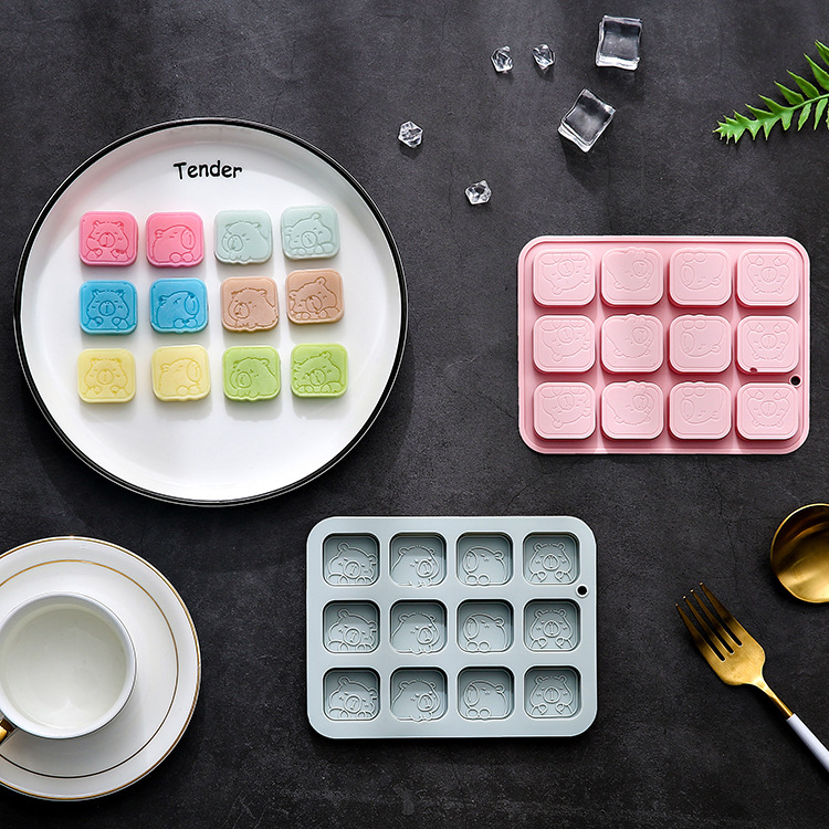スポット12連4種類の異なるカピバラ型シリコン型グミゼリーケーキ型焙煎チョコレート型