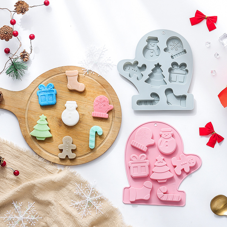 現物7連クリスマス手袋造形クリスマステーマ焙煎チョコレート金型シリコン焼き皿金型ケーキ金型