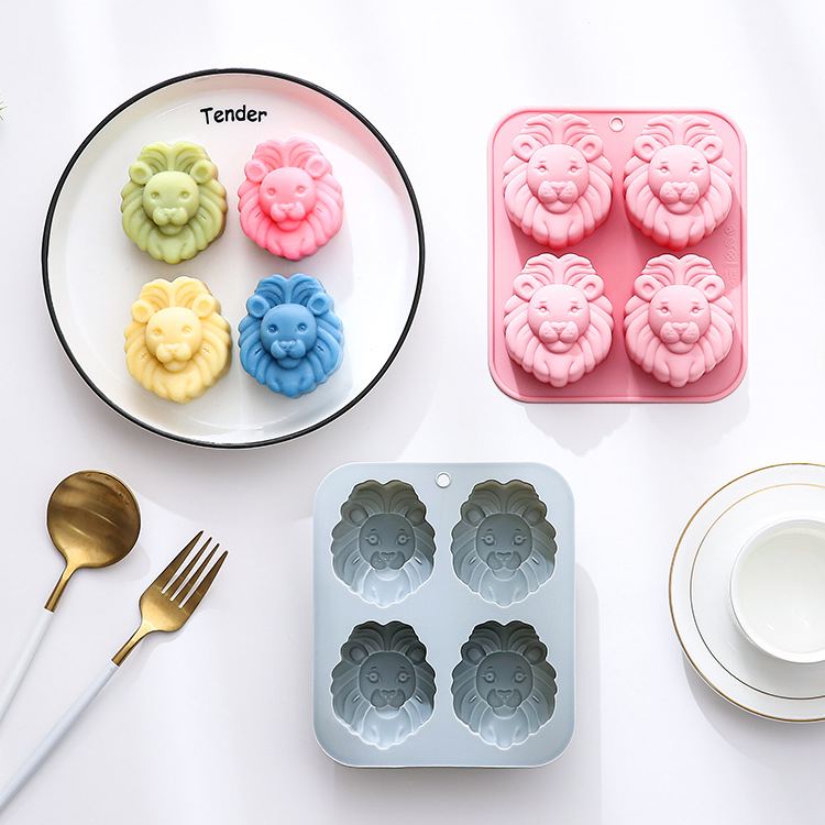 現物4連獅子の形のシリカゲルの鋳型はチョコレートを焼きます。