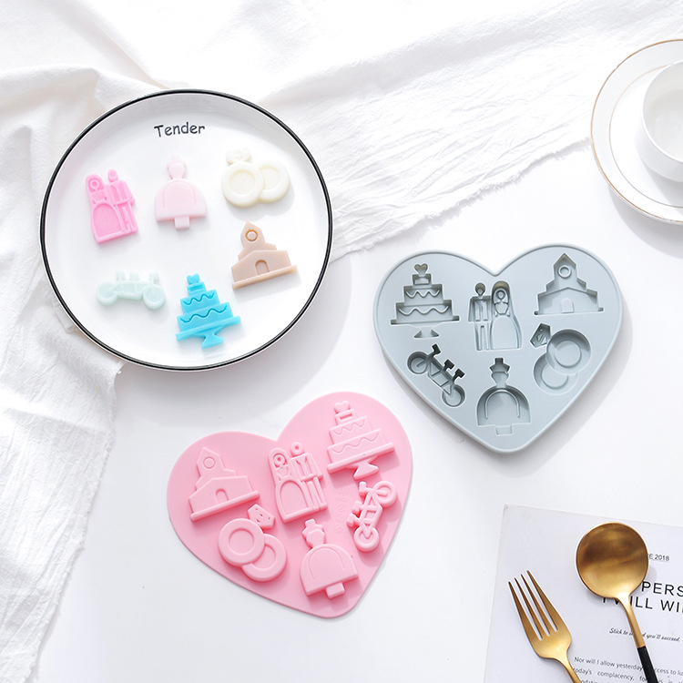 現物のバレンタインデーの日の6連の小さい愛の結婚式のテーマのシリコンのチョコレートの鋳型はゴムのケーキの鋳型を焼きます。