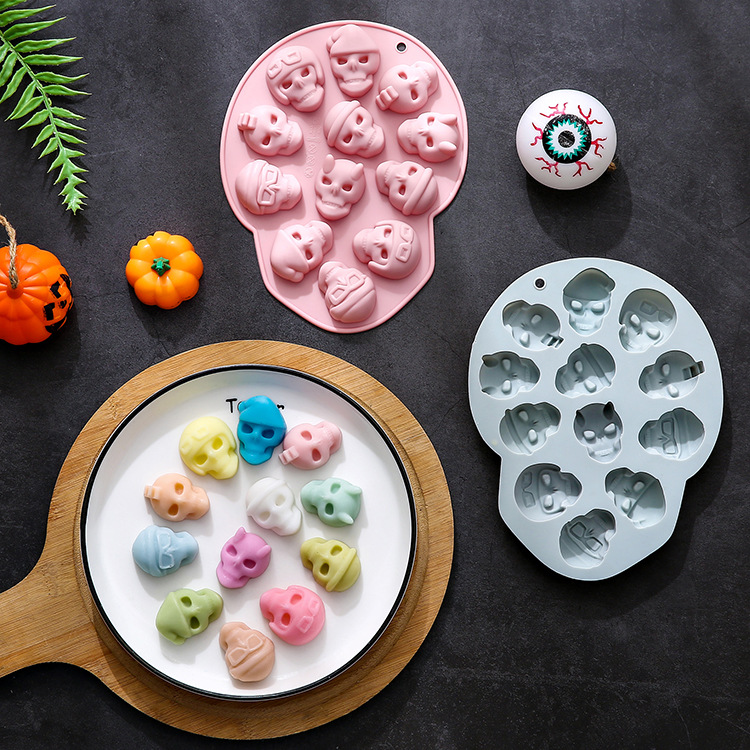 スポット12連6種類の異なるスカルのテーマの形のシリカゲルの鋳型のケーキのチョコレートはゴムの鋳型を焼きます。