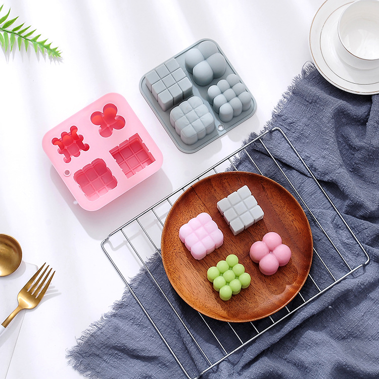 スポット4連トランペット異なる3dルービックキューブ造形シリコン金型魔球ろうそく滴金型焙煎ケーキ金型