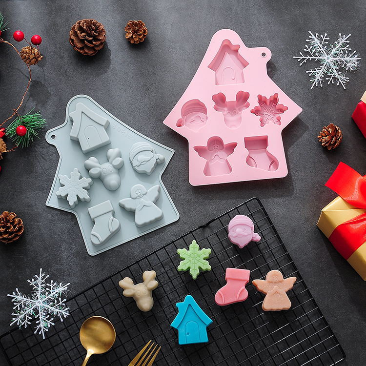 現物6連クリスマスハウス造形クリスマステーマシリコン金型焙煎ケーキ金型ドリップチョコレート金型