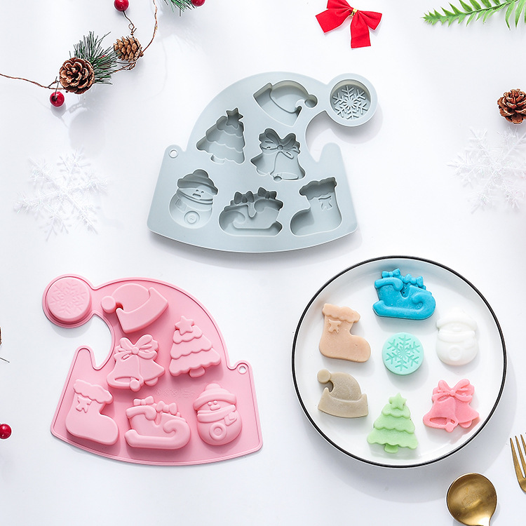 現物7連クリスマス帽造形クリスマステーマシリコンケーキ金型焙煎チョコレート金型滴ゴム金型