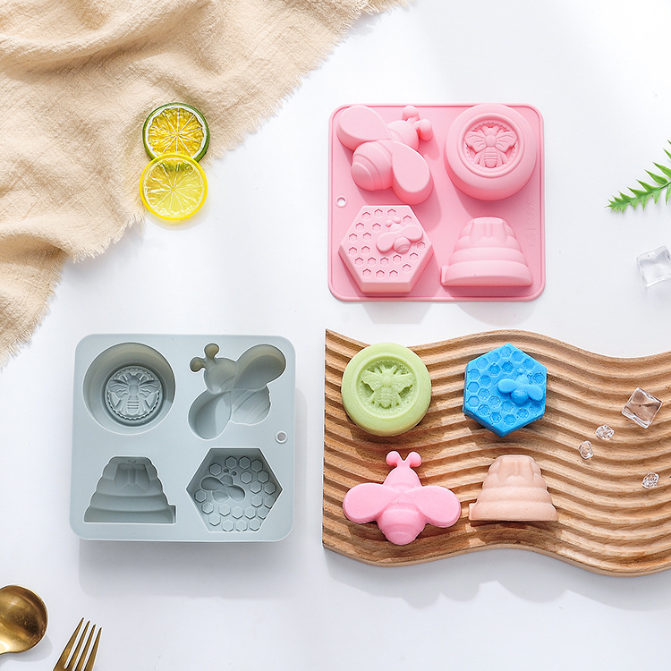 スポット4連蜂の巣ミツバチ造形シリカゲル金型焙煎ツール焼き皿手作り石けんケーキ型滴金型