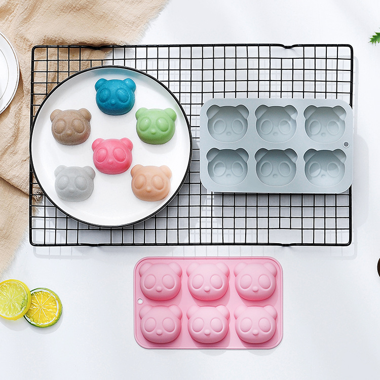 現物6連のパンダの形のシリカゲルの鋳型の手作りの石けんの鋳型の焙煎するツールのケーキの鋳型の置物のゴムの鋳型