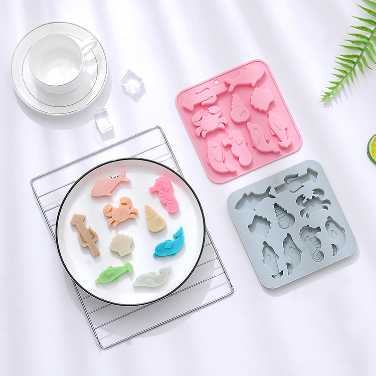 現物9連の異なる海洋生物の形のチョコレートの型のシリカゲルの焼き皿の焙煎ツールのドリップケーキの型