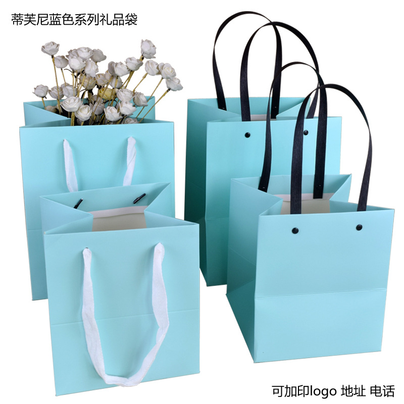 ティ符尼青正方形の紙袋の植木鉢の幅と底を厚くして贈り物の袋のケーキの箱の包装の袋の花の手提げ袋を厚くします。