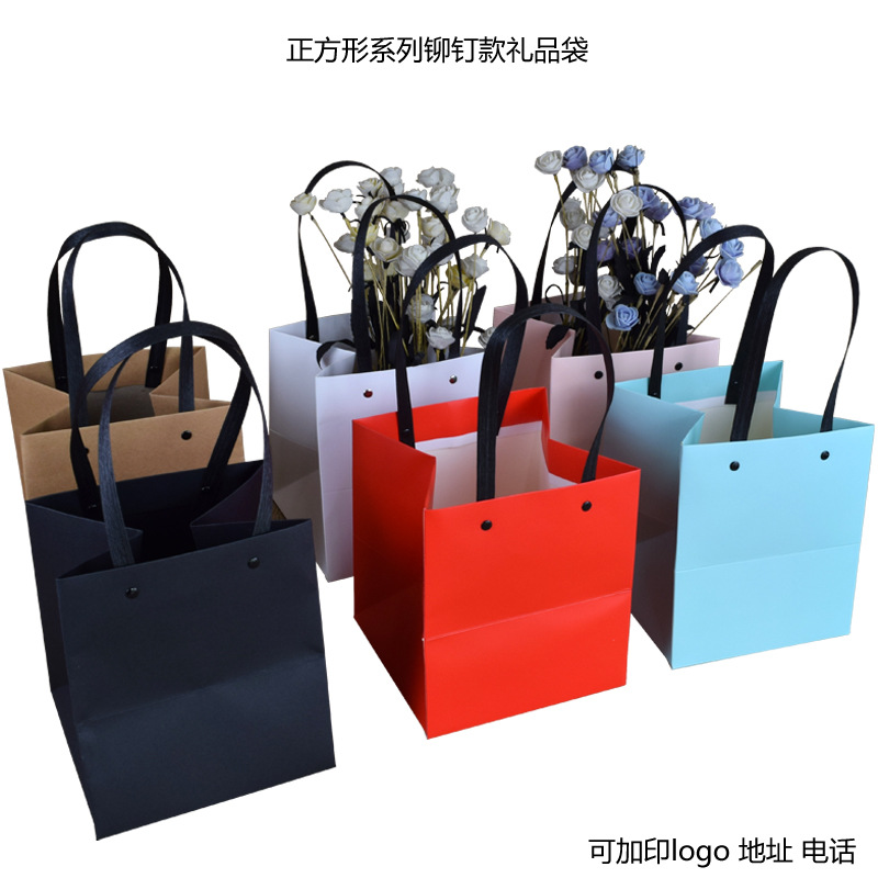 手提げ生け花ギフトバッグ生花包装箱新型シンプル紙手提げ花かご花屋花芸生花紙袋