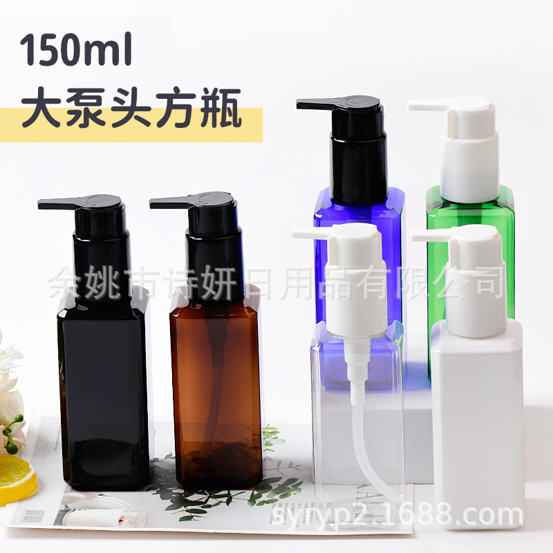 バッチ150ml角瓶ASカバー鳥口パウダーポンプエッセンシャルオイルスキンケア乳液クリームヘアケア液体サンプル分注ボトル梱包材