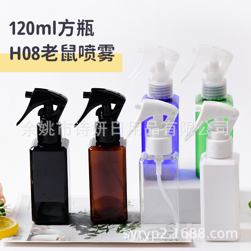 卸売り120ml角瓶とh 08マウスノズル24-410口径消毒水園芸スプレーボトル包装材