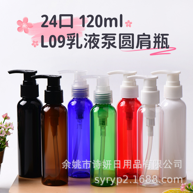 卸売り120ml角瓶24歯とL09全塑性ポンプヘッド精油シャンプーリンス空瓶包装材分注瓶