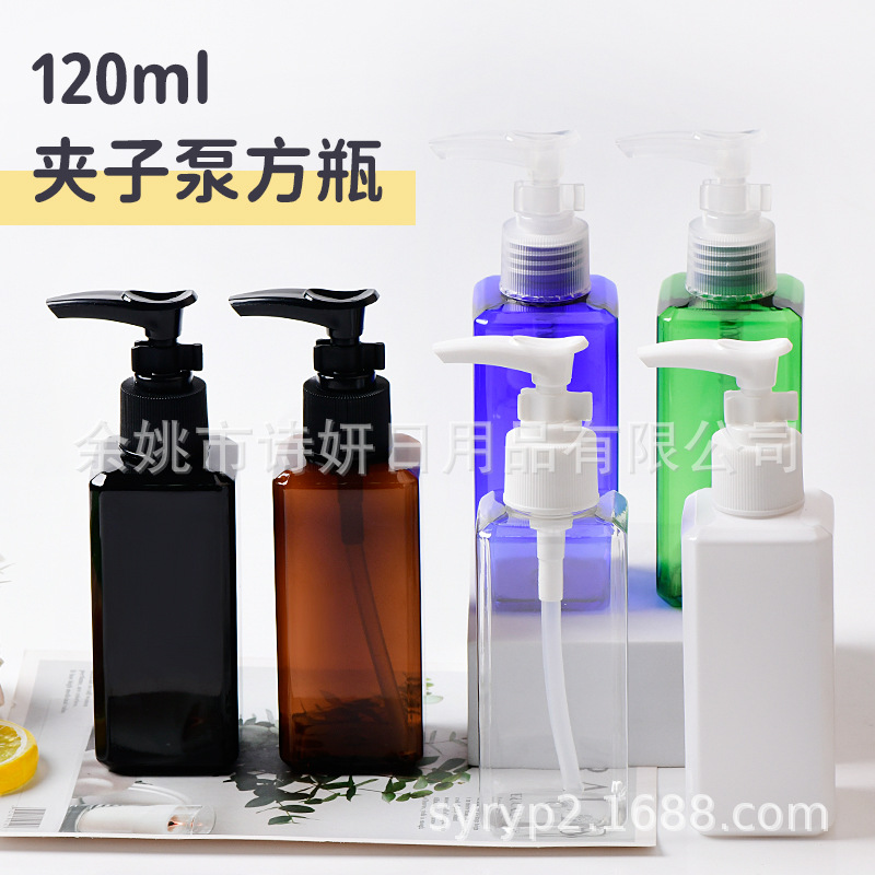 卸売り120ml角瓶24歯クリップポンプ乳液押圧ポンプ精油洗浄液PET化粧品分注瓶