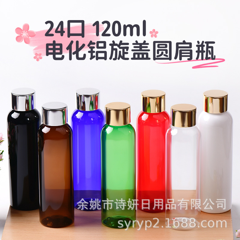 120ml角瓶電化アルミ回転蓋シャンプー入浴剤リンスサンプル精油瓶空瓶分注瓶
