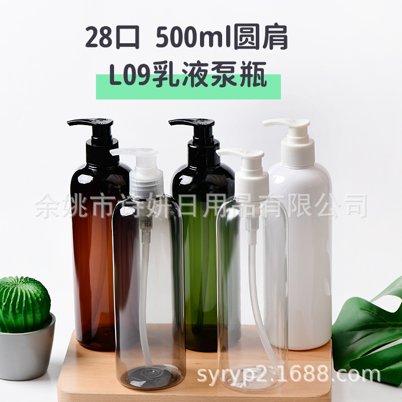 工場ロット500ml丸肩28歯とL09全塑性ポンプヘッド精油シャンプーリンス空瓶分注瓶
