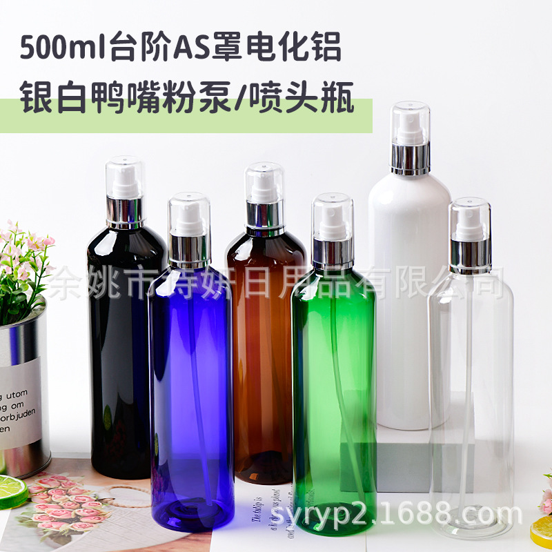 500ml階段丸肩AS円カバー電気化アルミアヒル口粉ポンプ/スプリンクラー精油爽やかな水噴霧包材