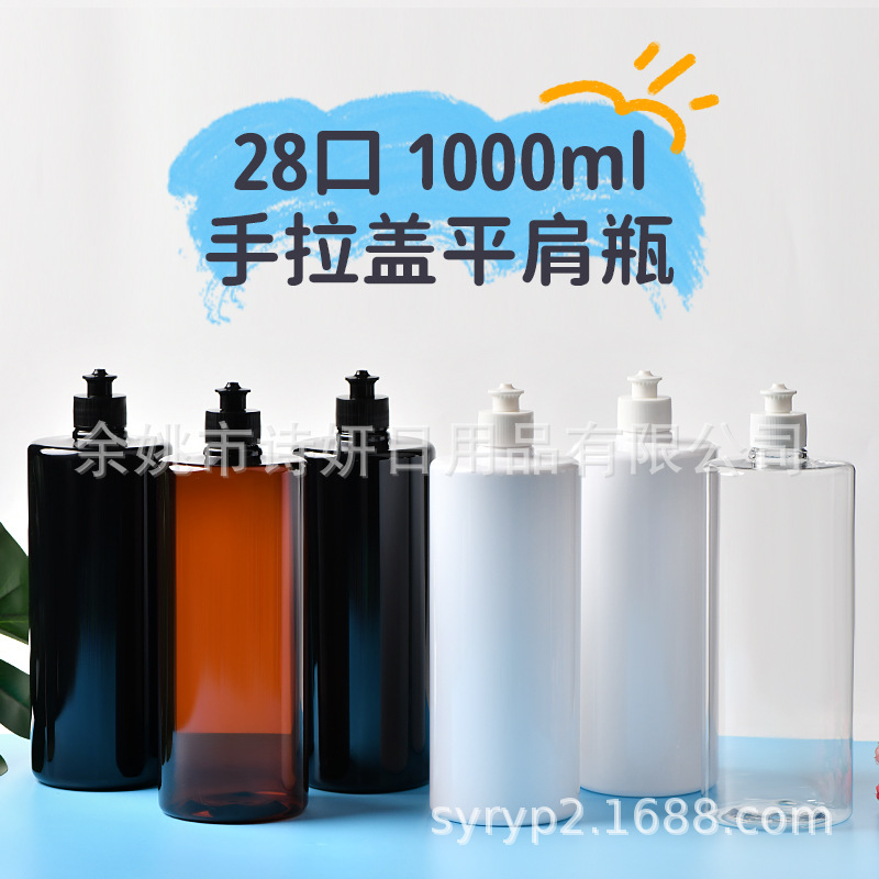 卸売り1000ml平肩ペットボトルと手で蓋をした爽やかな乳液シャンプーpet化粧品の分注瓶