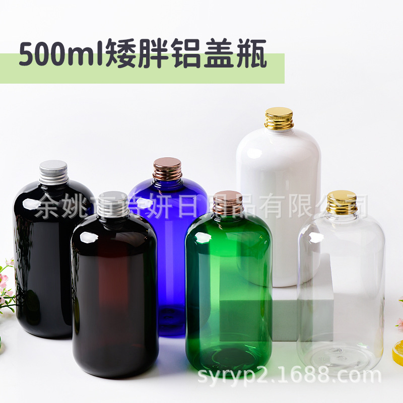 卸売りの500mlの丸い肩の低い太った瓶とアルミの蓋と内栓の化粧品の包装の純露の乳液はpetの空を分けます。