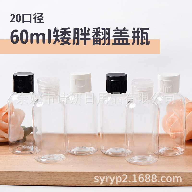 工場卸売り60ml丸い肩PETプラスチックカバー蝶蓋瓶手洗い液サンプル乳液携帯分注瓶