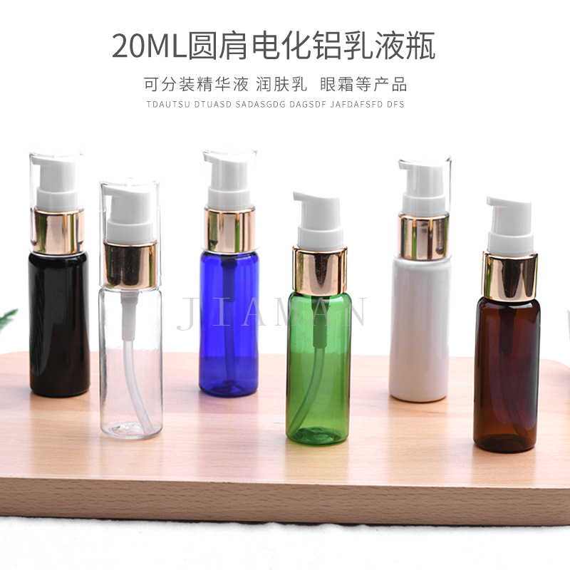 20ml丸肩ペットボトルpetボトルファンデーション18口電化アルミアヒル口ポンプ金白ポンプ押圧ローションボトル