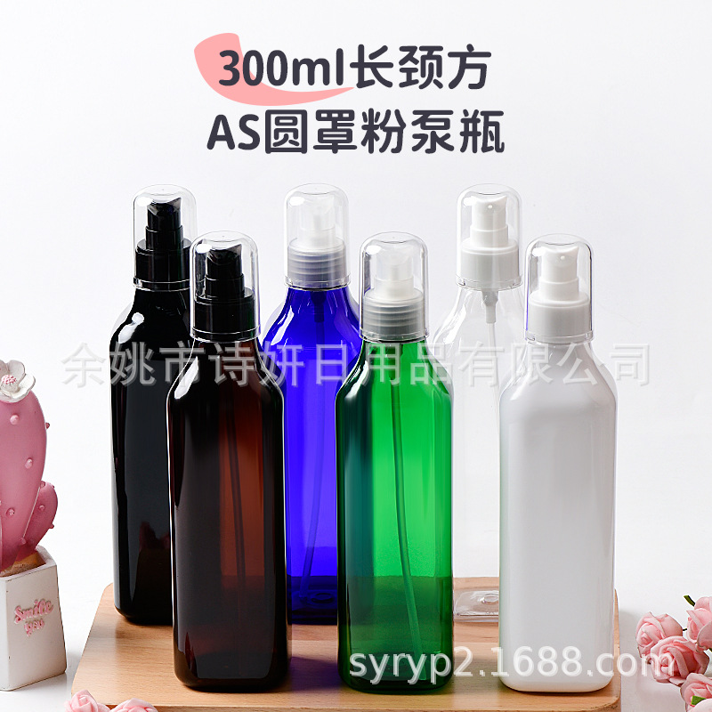 300mlロングネック角petボトルASカバーラウンドカバーパウダーポンプファンデーションローション化粧品分注梱包材空ボトル