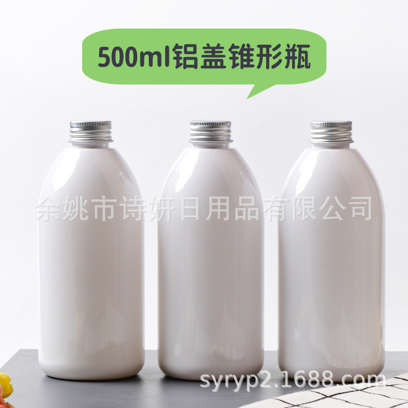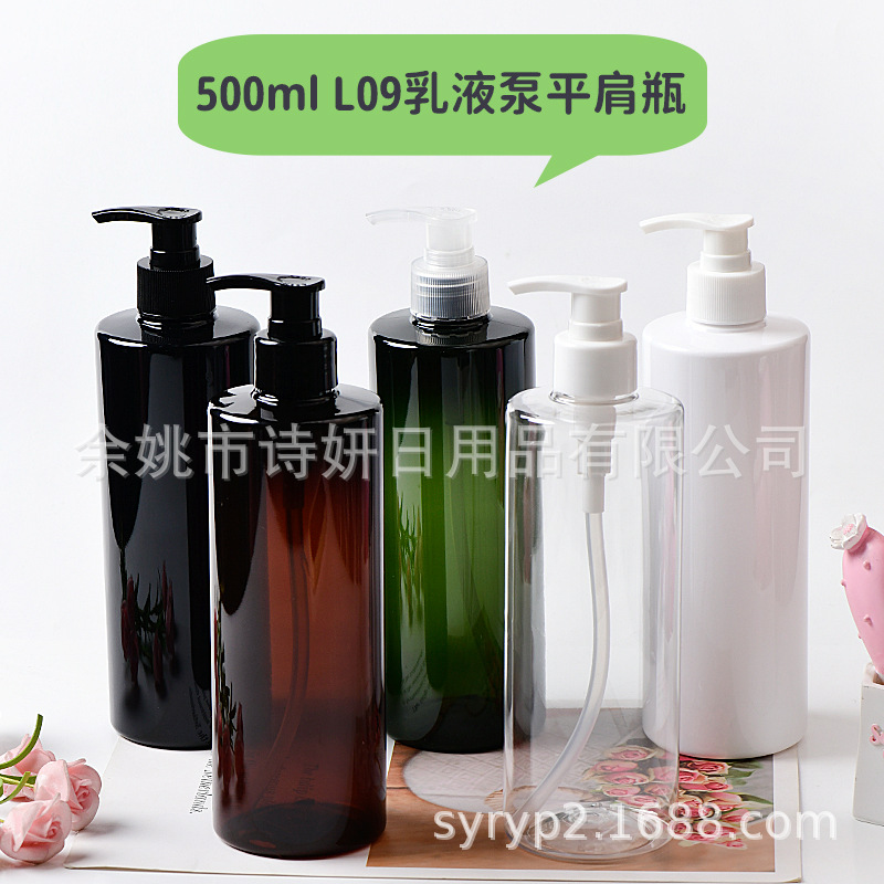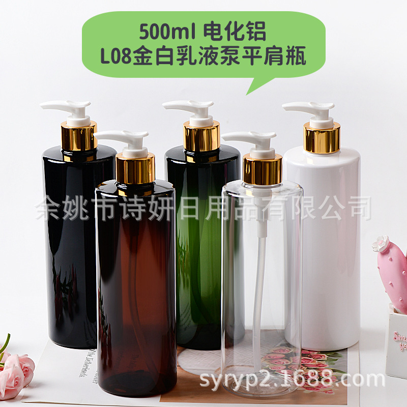 卸売り500ml平肩瓶と28口径L08電化アルミポンプヘッド水乳スキンケア分注瓶包装材空瓶