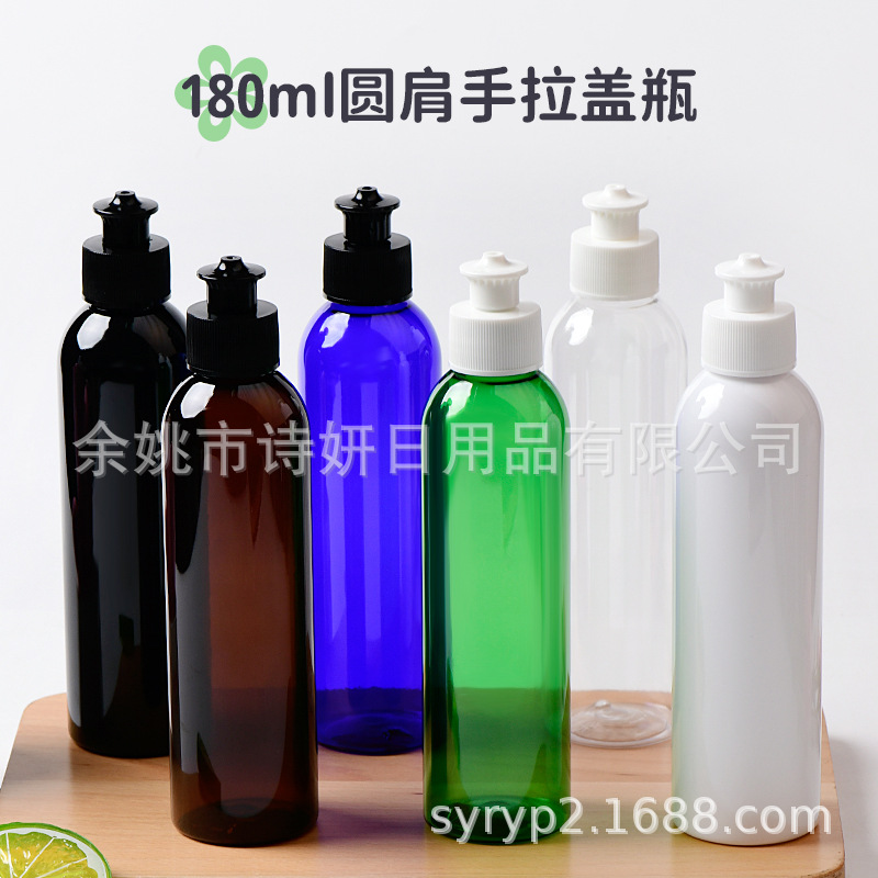 バッチ180ml丸い肩PETプラスチックボトルハンドキャップ化粧品包装シャンプー入浴剤ボディローションボトル