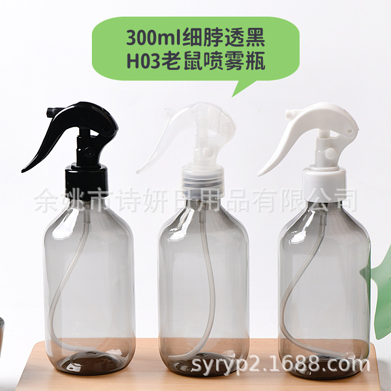 300mlの細い首の透明な黒い瓶と28歯のm 05ネズミのスプレーの瓶のPET化粧品の分注の瓶