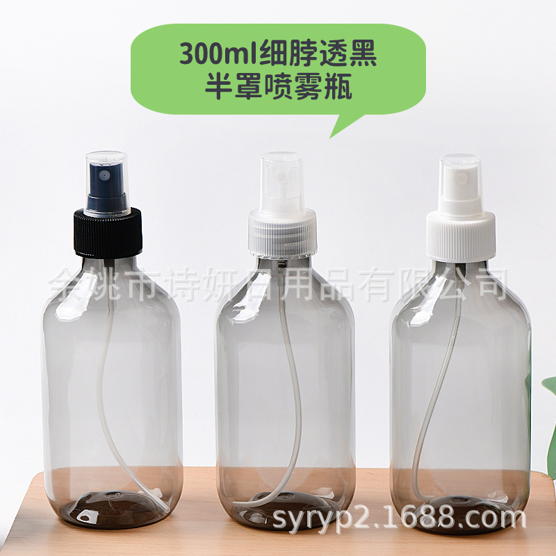 卸売り300mlの細い首の透明な黒いpetの瓶は半カバーのノズルの28口径のプラスチックの瓶を配合します。