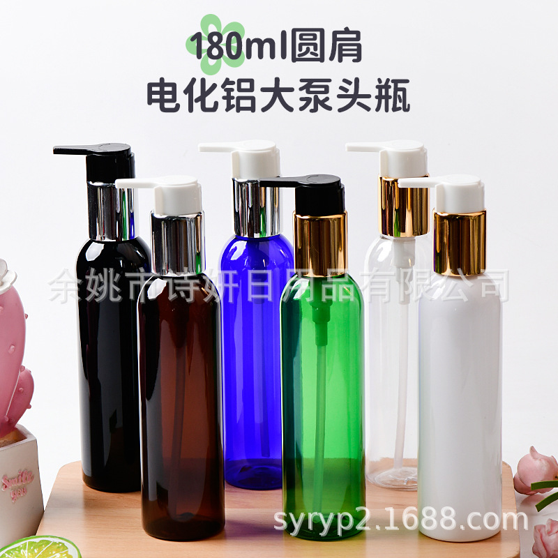 180ml丸肩ペットボトルと電化アルミ大ポンプヘッド乳液シャンプー入浴露瓶pet空瓶