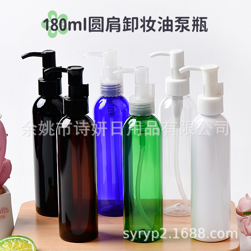 工場卸売り180ml丸肩瓶と24口径クレンジングオイルポンプ頭押しポンプ化粧品空瓶包装材