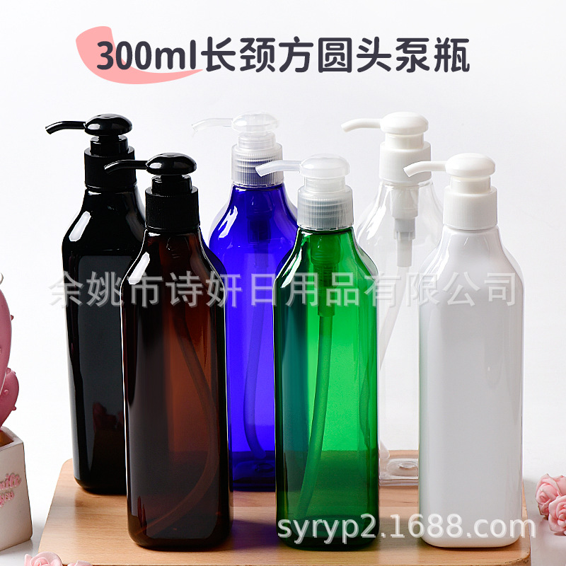 バッチ300mlロングネックカラー角瓶手洗い液シャンプー入浴露瓶化粧品分注瓶丸頭ポンプ瓶