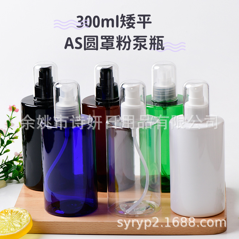 バッチ300ml低平petボトルとアヒル口粉ポンプスキンケア粉底液乳液化粧品分注包装材空瓶