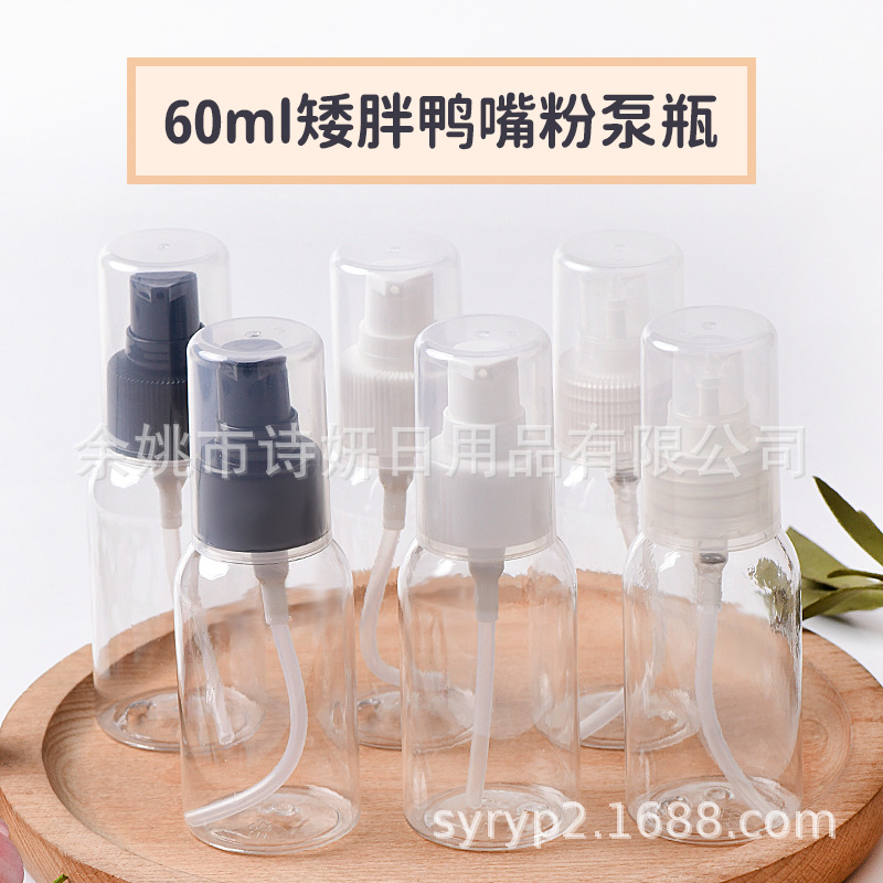 バッチ60mlの低い太った丸い肩PETペットボトルアヒル口粉ポンプ精油スキンケア液露のサンプル包装材