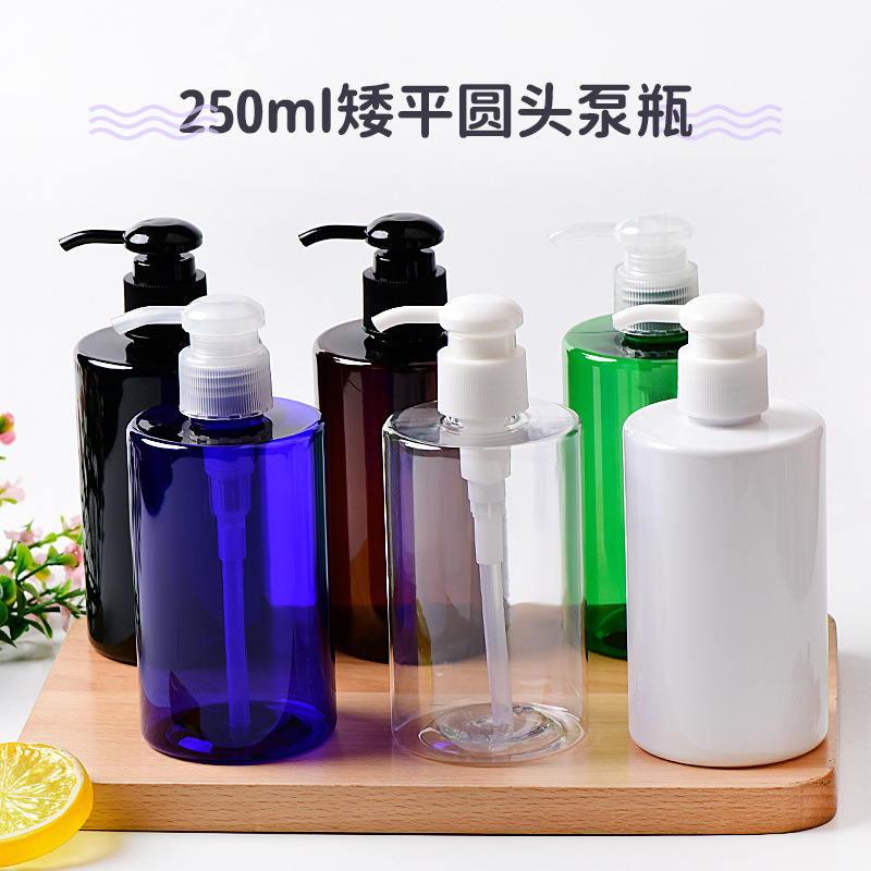 卸売り250mlミリリットル低平金PETペットボトルと丸頭押しポンプシャンプー入浴剤缶瓶