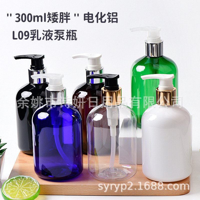 卸売り300mlミリリットルの背の低い太った24口L09電化アルミポンプ頭シャンプーリンス空瓶分注瓶