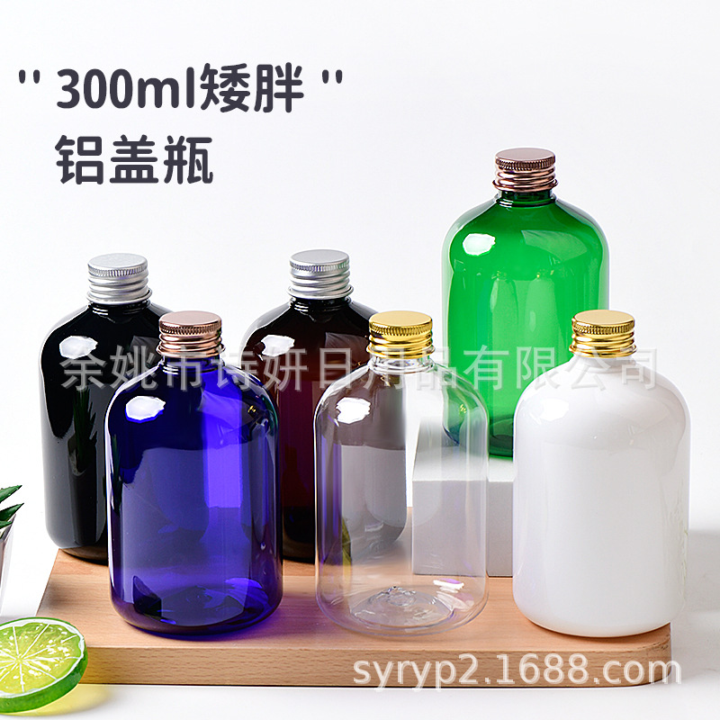 卸売り300mlの低い太った丸い肩の瓶とアルミの蓋の螺旋の蓋の化粧品の分注の瓶の純露のアルミニウムの蓋の瓶のPETの空の瓶